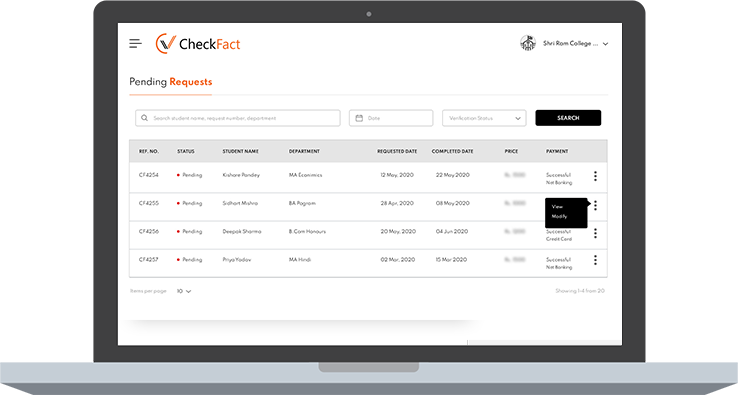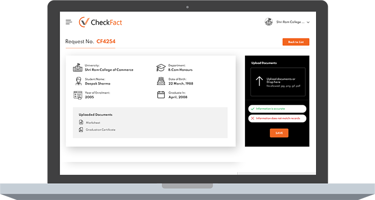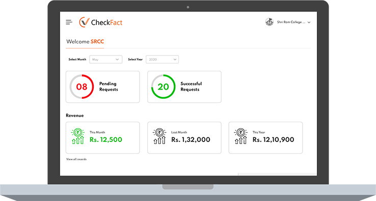CONTACTLESS, FAST, SECURE : CheckFact facilitates institutions & companies provide verifications to recruiters and helps institutions & companies get REVENUE on each transaction.